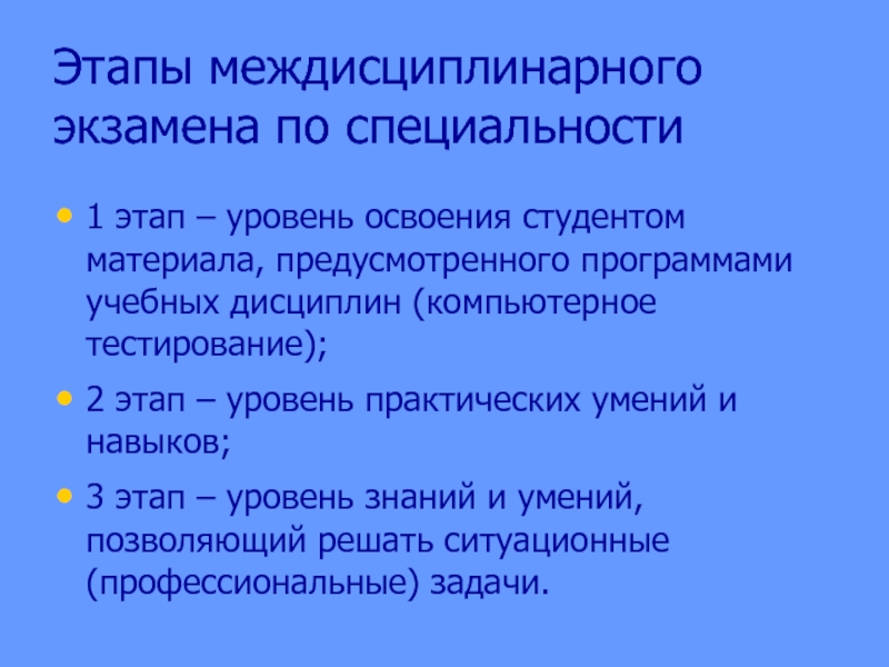 Слайд 5Этапы междисциплинарного экзамена по специальности