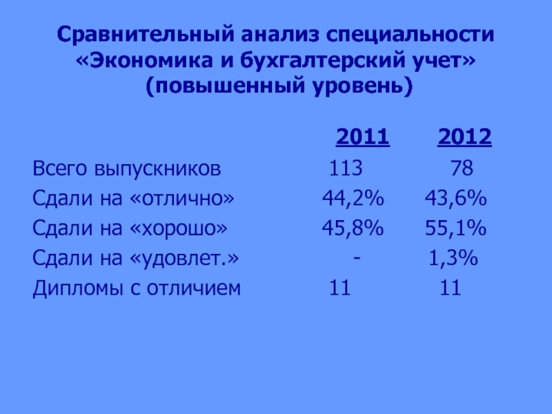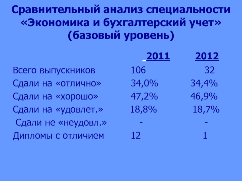 Слайд 7Сравнительный анализ специальности «Экономика и бухгалтерский учет» (базовый уровень)