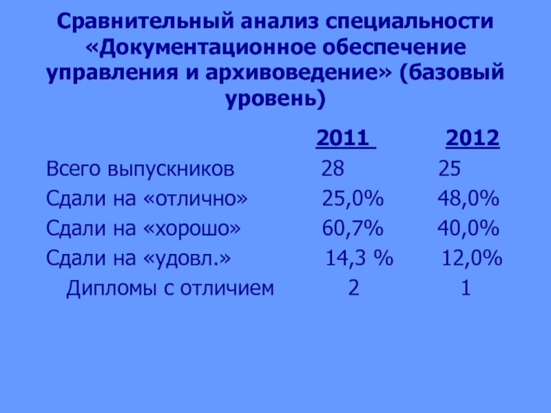 Слайд 12Сравнительный анализ специальности «Документационное обеспечение управления и архивоведение» (базовый уровень)