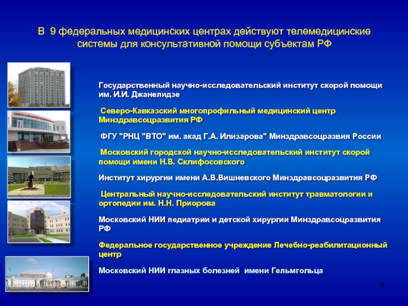 9 федеральных телемедицинских центров экстренной консультативной помощи