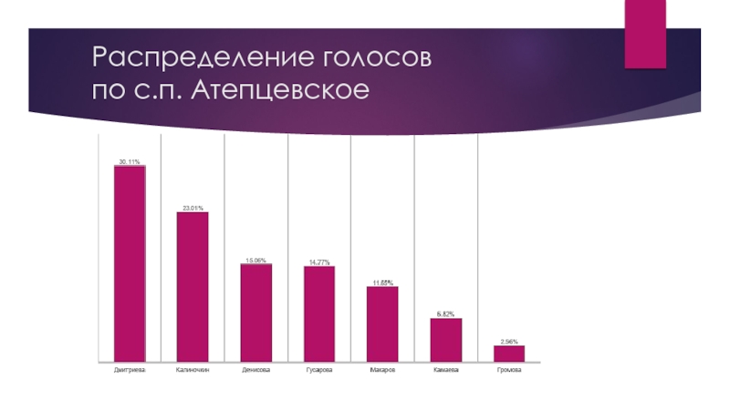 Слайд 7Распределение голосов по с.п. Атепцевское