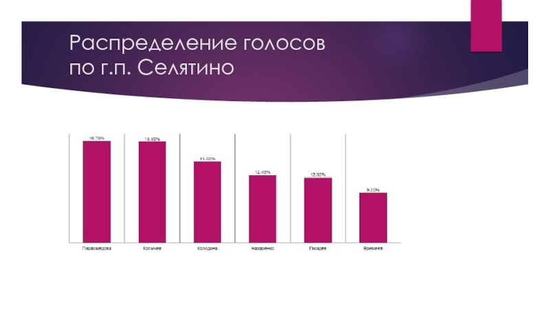 Слайд 6Распределение голосов по г.п. Селятино