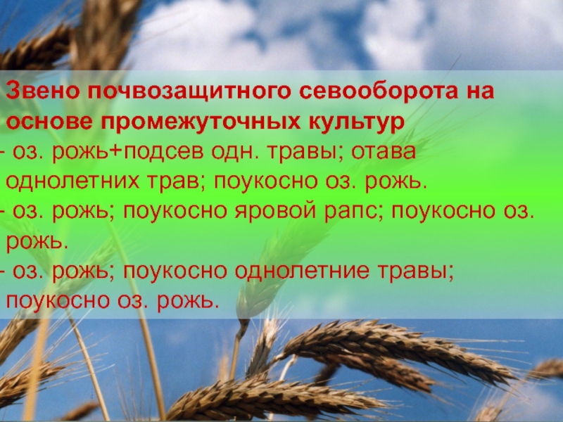 оз. рожь; поукосно однолетние травы; поукосно оз. рожь.