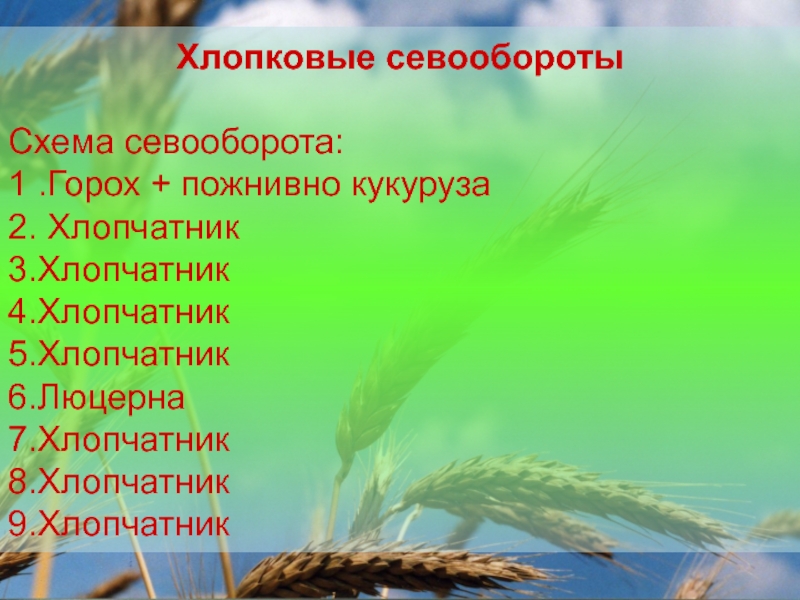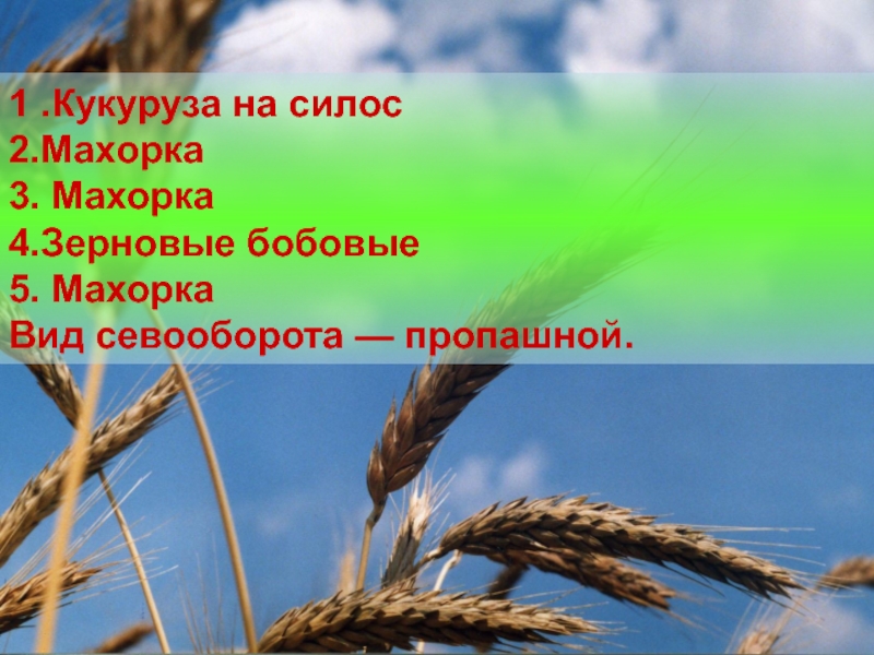 Однолетние травы с подсевом многолетних Табачные и махорочные севообороты.