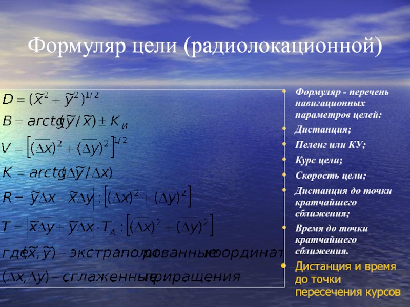 Формуляр - перечень навигационных параметров целей: