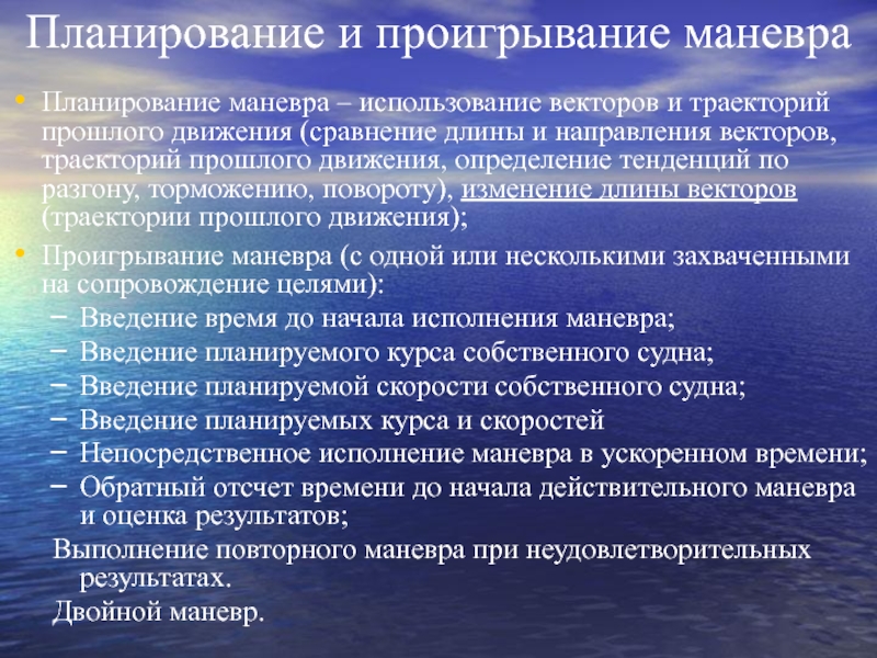 планирование и проигрывание маневра.