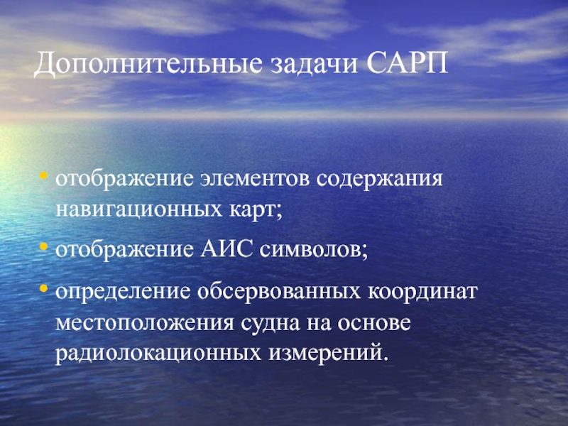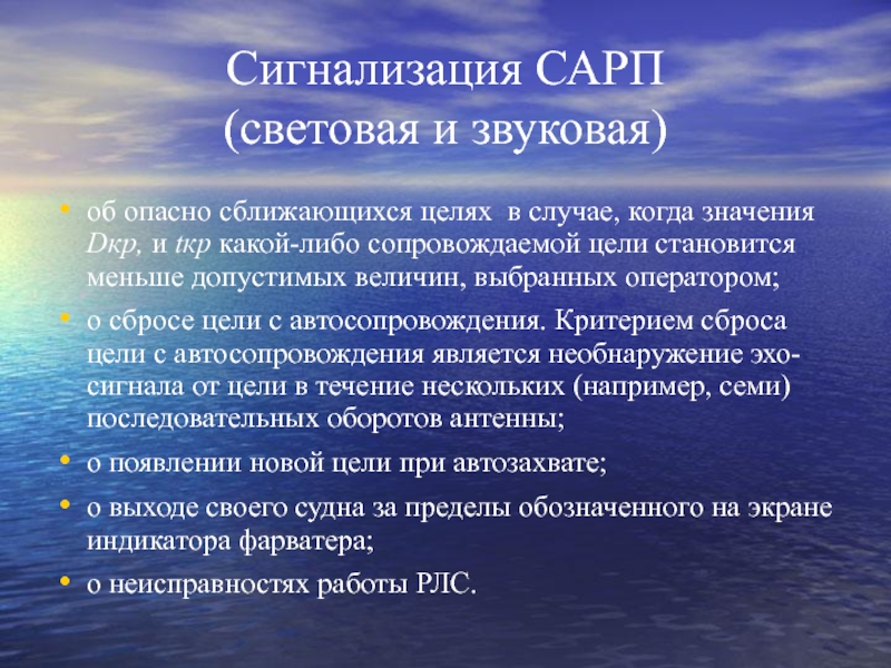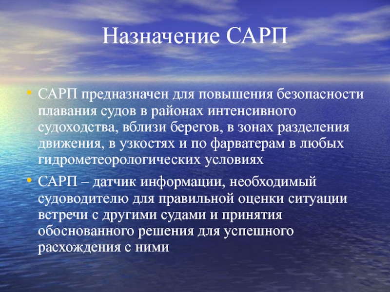 САРП – датчик информации, необходимый судоводителю для правильной оценки ситуации встречи с другими судами и принятия обоснованного решения для успешного расхождения с ними