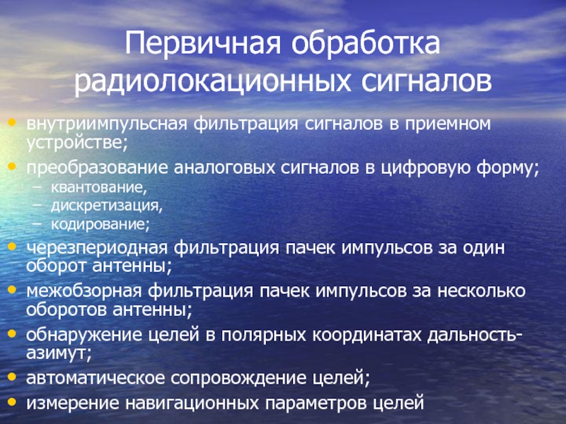 Слайд 4Первичная обработка радиолокационных сигналов