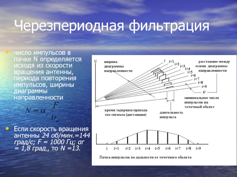 черезпериодная фильтрация пачек импульсов за один оборот антенны;