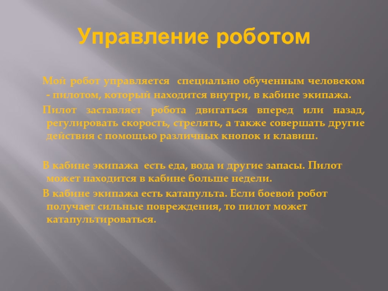 Мой робот управляется специально обученным человеком - пилотом, который находится