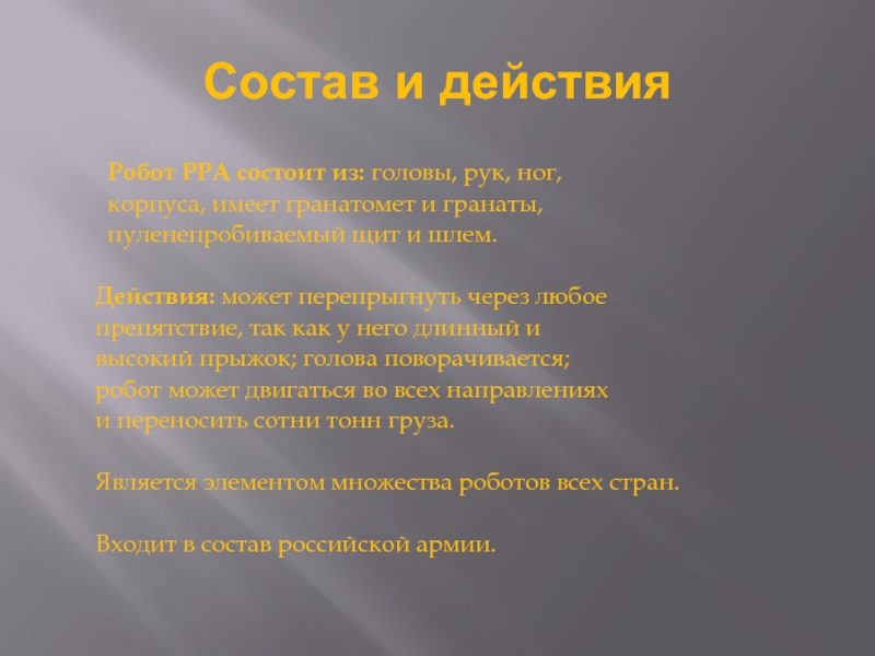 Имя робота - боевой робот РРА (Робот Российской Армии) -