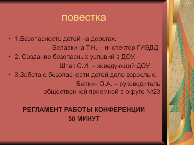 РОДИТЕЛЬСКАЯ КОНФЕРЕНЦИЯ "Безопасность детей в наших руках" презентация