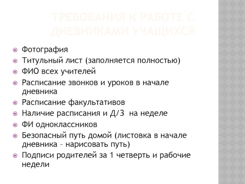 Слайд 6ТРЕБОВАНИЯ К РАБОТЕ С ДНЕВНИКАМИ УЧАЩИХСЯ
