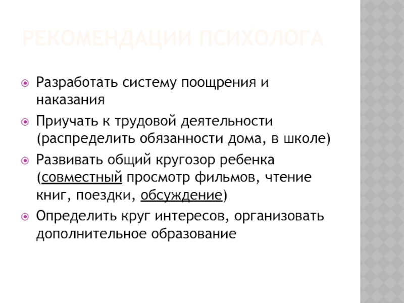 Слайд 9РЕКОМЕНДАЦИИ ПСИХОЛОГА