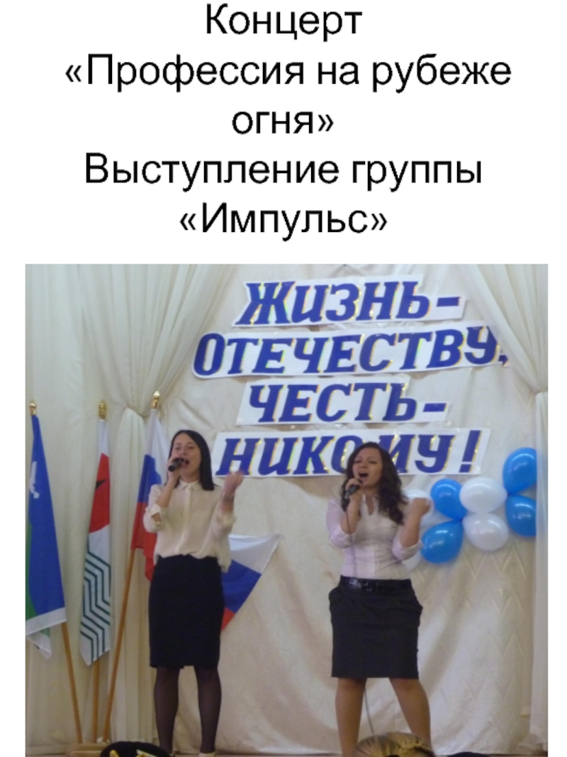 Слайд 8 Концерт «Профессия на рубеже огня» Выступление группы «Импульс»
