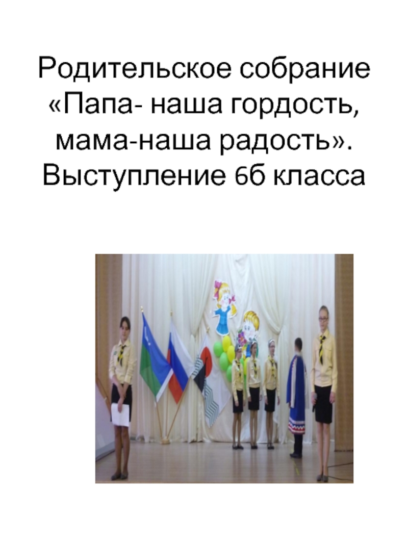 Слайд 2 Родительское собрание «Папа- наша гордость, мама-наша радость». Выступление 6б класса