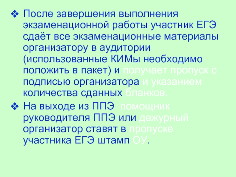 Слайд 25После завершения выполнения экзаменационной работы участник ЕГЭ сдаёт все экзаменационные материалы