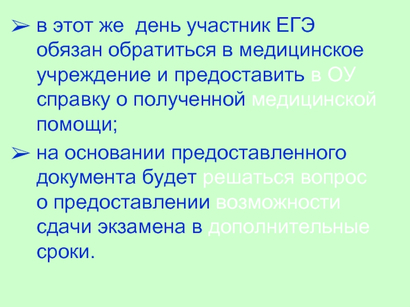 Слайд 23в этот же день участник ЕГЭ обязан обратиться в медицинское учреждение