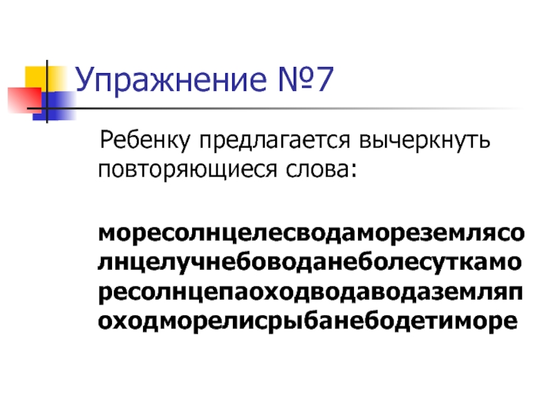 Ребенку предлагается вычеркнуть повторяющиеся слова: