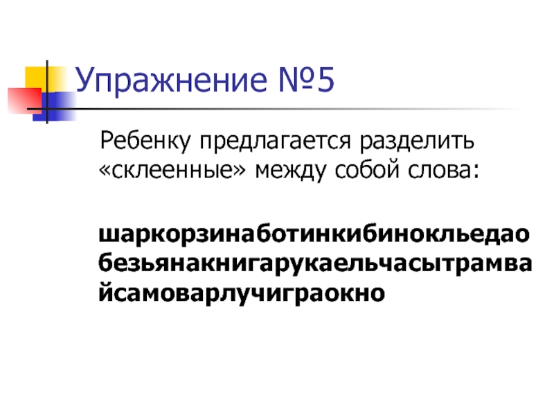 Ребенку предлагается разделить «склеенные» между собой слова: