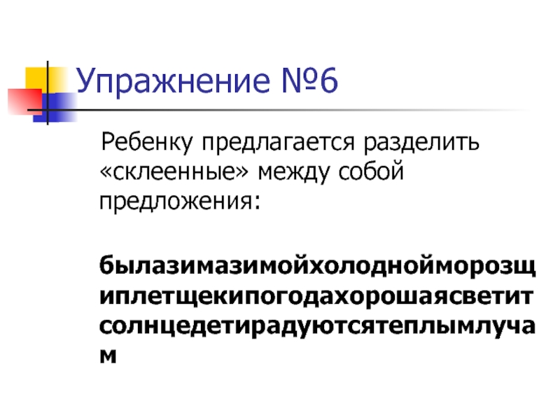 Ребенку предлагается разделить «склеенные» между собой предложения: