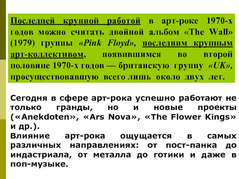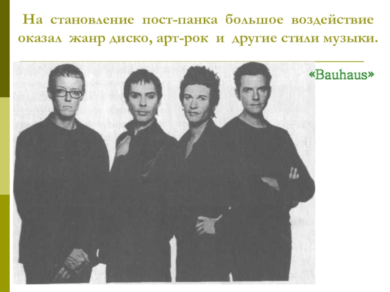 Слайд 29На становление пост-панка большое воздействие оказал жанр диско, арт-рок и другие