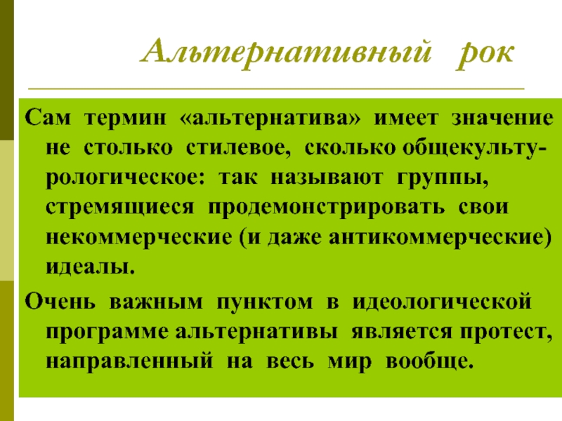 Сам термин «альтернатива» имеет значение не столько стилевое,