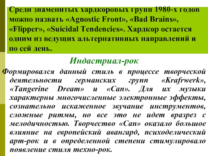 Слайд 40Среди знаменитых хардкоровых групп 1980-х годов можно назвать «Agnostic Front», «Bad