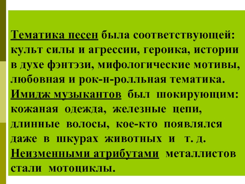 Слайд 37Тематика песен была соответствующей: культ силы и агрессии, героика, истории в