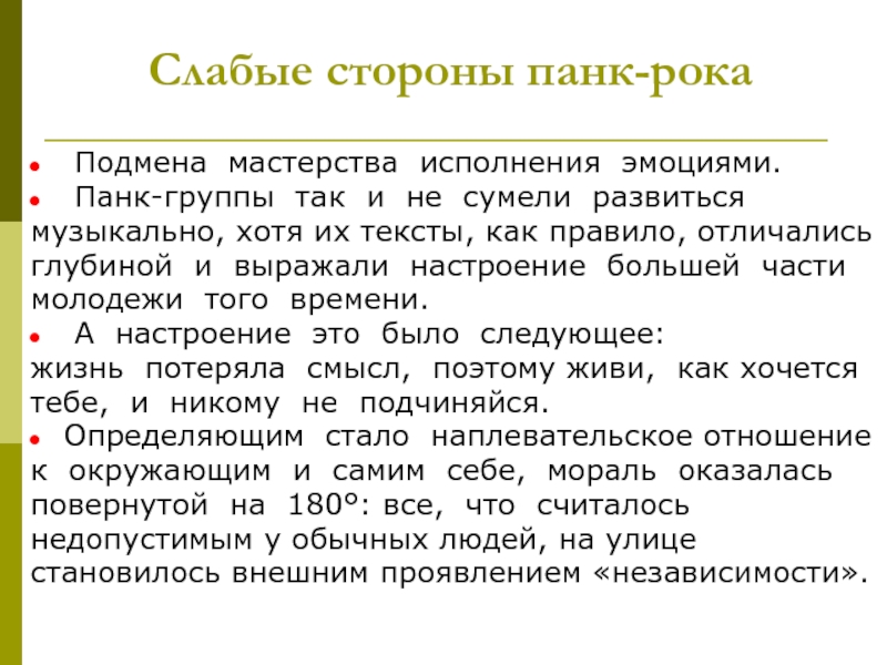 Слайд 5Слабые стороны панк-рока
