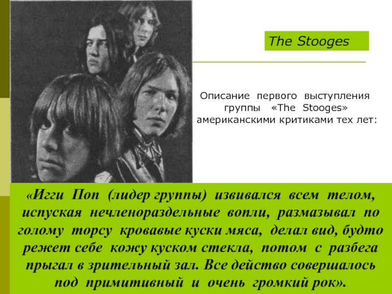 Слайд 4«Игги Поп (лидер группы) извивался всем телом,