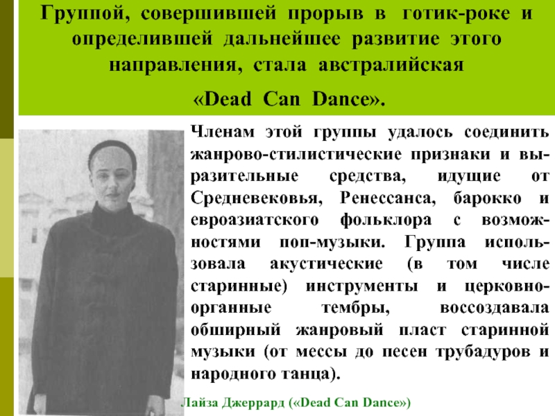 Слайд 34Группой, совершившей прорыв в готик-роке и определившей дальнейшее развитие этого