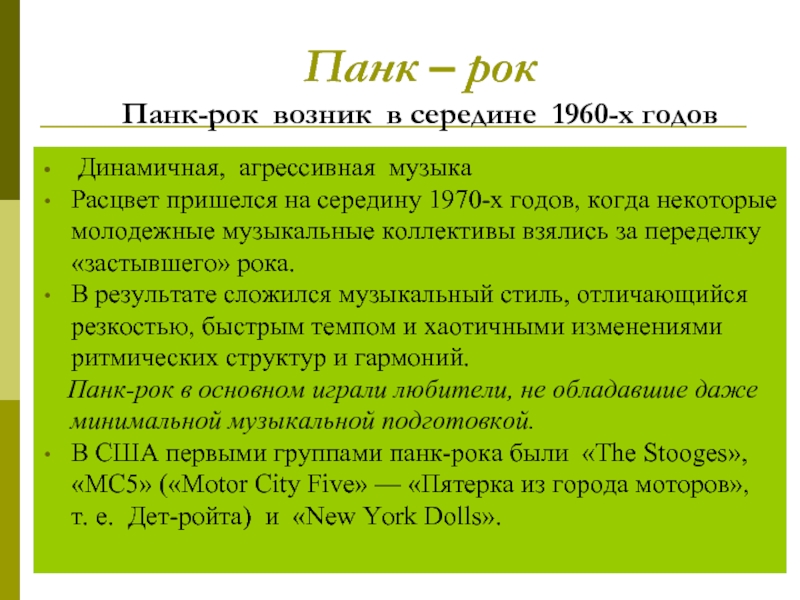Панк-рок возник в середине 1960-х годов