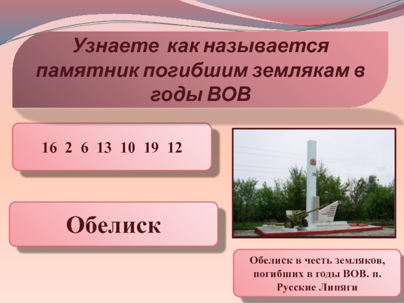 Обелиск в честь земляков, погибших в годы ВОВ. п.Русские Липяги