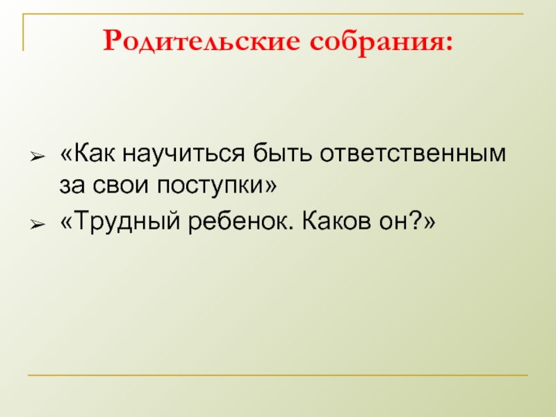 Слайд 8Родительские собрания: