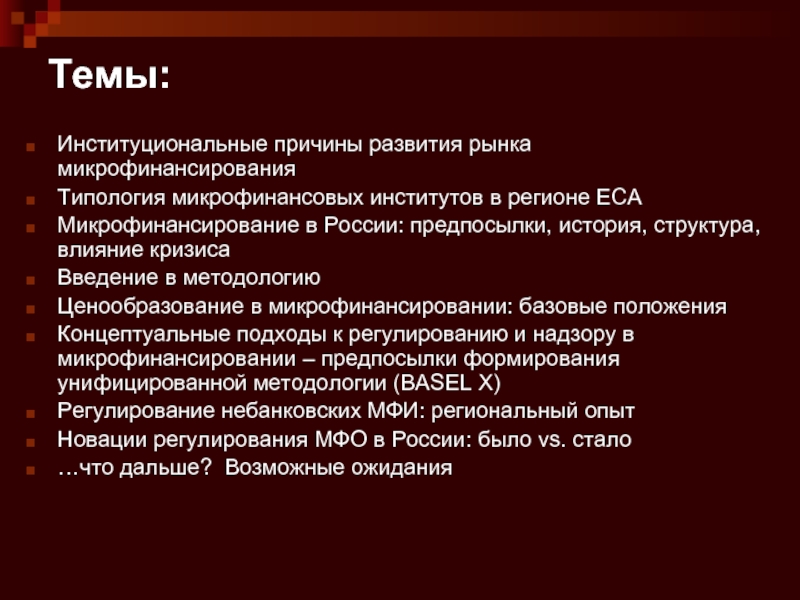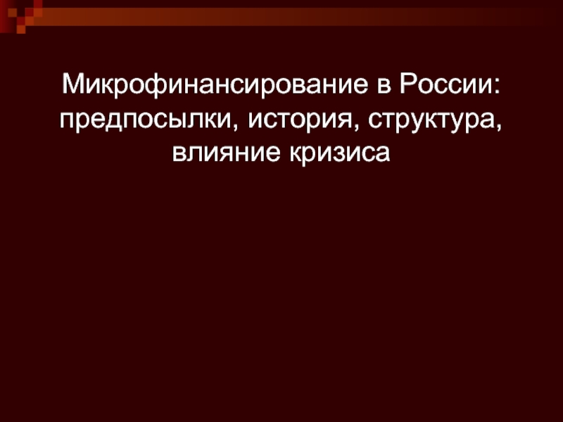 Слайд 8Микрофинансирование в России: предпосылки, история, структура, влияние кризиса