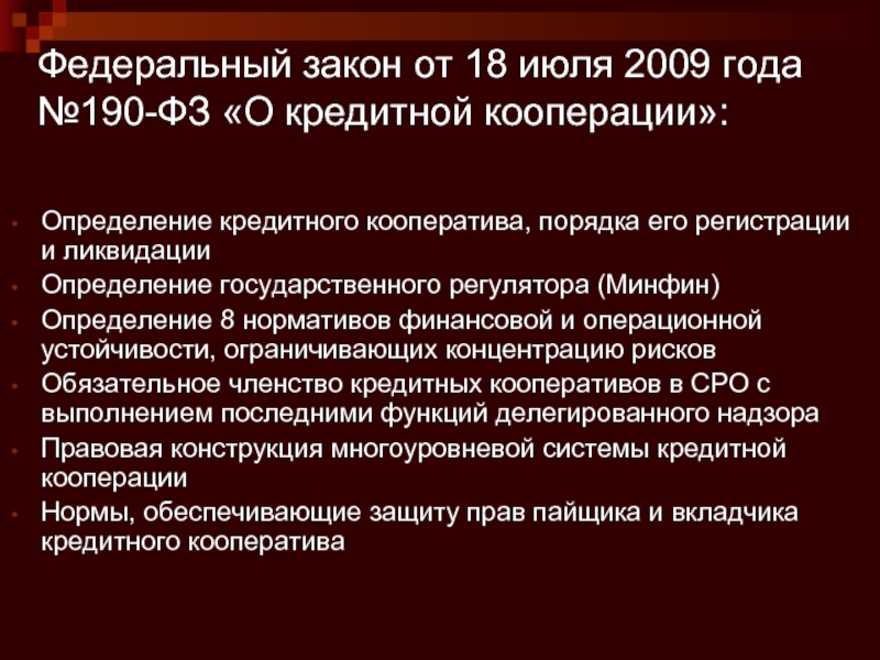 Федеральный закон от 18 июля 2009 года №190-ФЗ «О кредитной кооперации»: