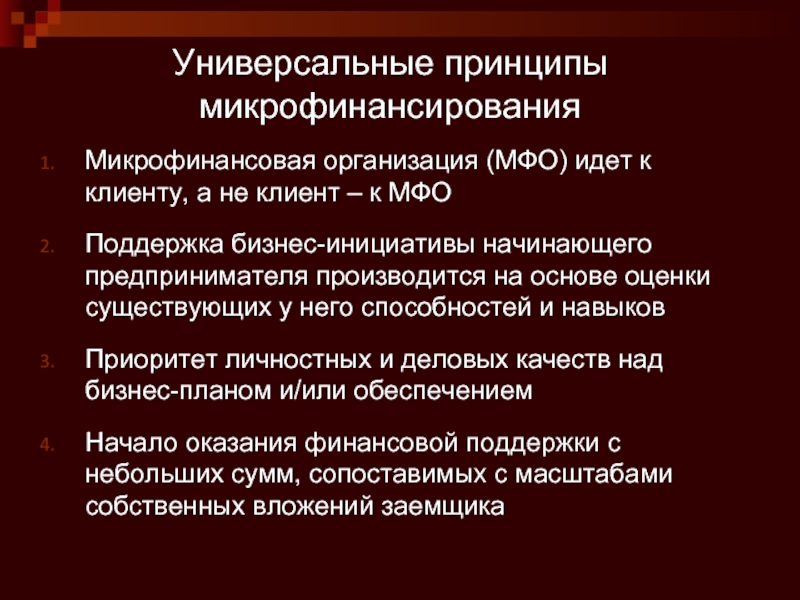 Основными предпосылками быстрого развития микрофинансирования являются: