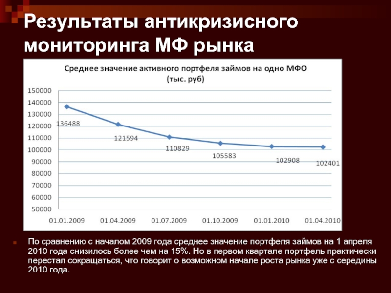 Слайд 13Результаты антикризисного мониторинга МФ рынка