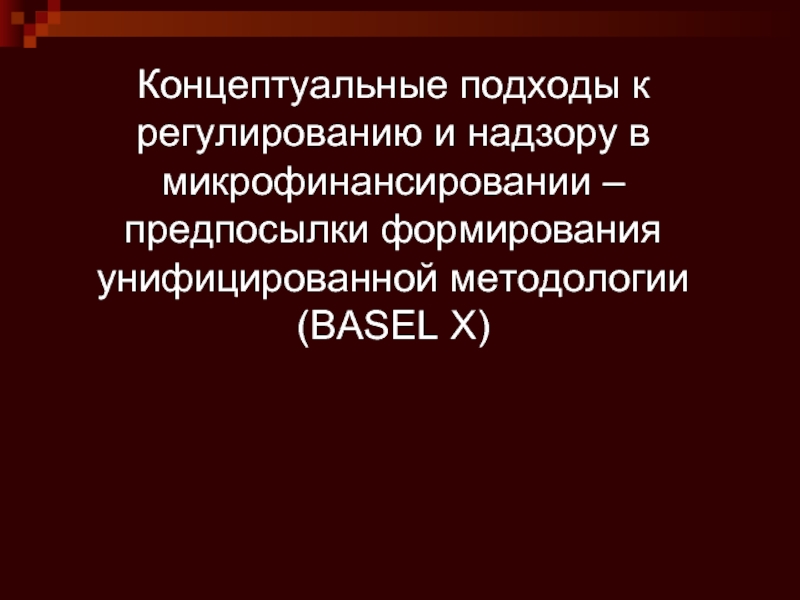 Слайд 21Концептуальные подходы к регулированию и надзору в микрофинансировании – предпосылки формирования