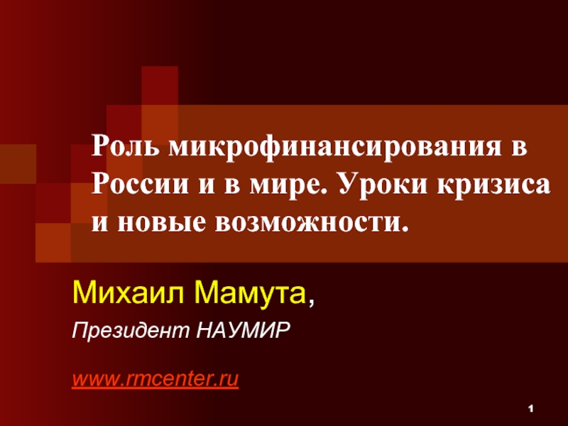 Слайд 1Роль микрофинансирования в России и в мире. Уроки кризиса и новые