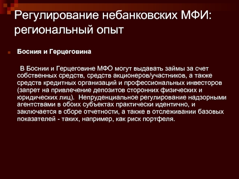 Слайд 24Регулирование небанковских МФИ: региональный опыт
