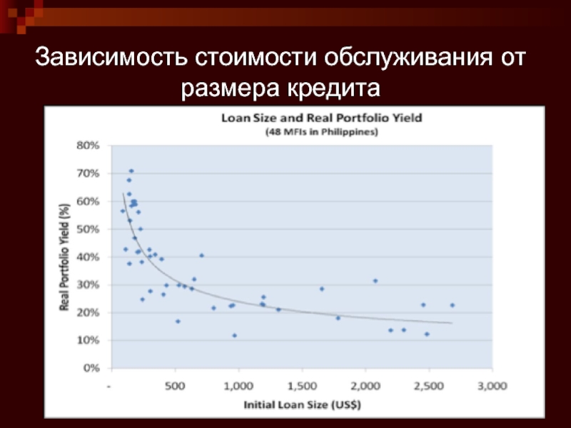 Слайд 19Зависимость стоимости обслуживания от размера кредита