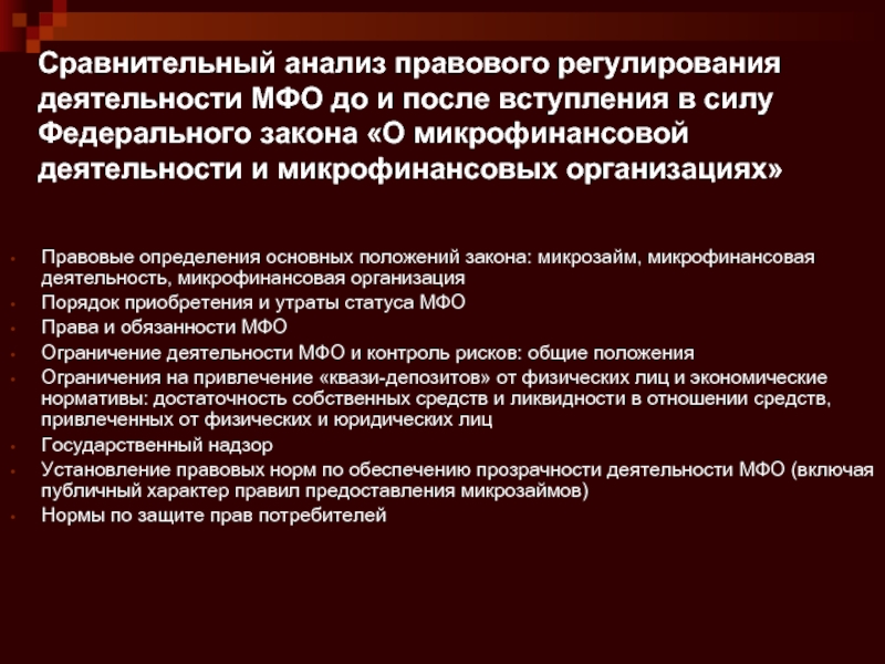 Сравнительный анализ правового регулирования деятельности МФО до и после вступления в
