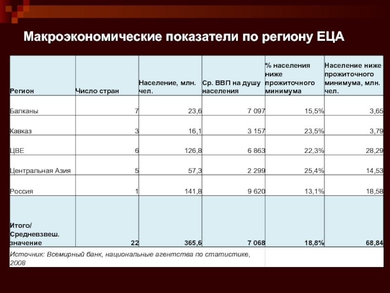 Слайд 5Макроэкономические показатели по региону ЕЦА