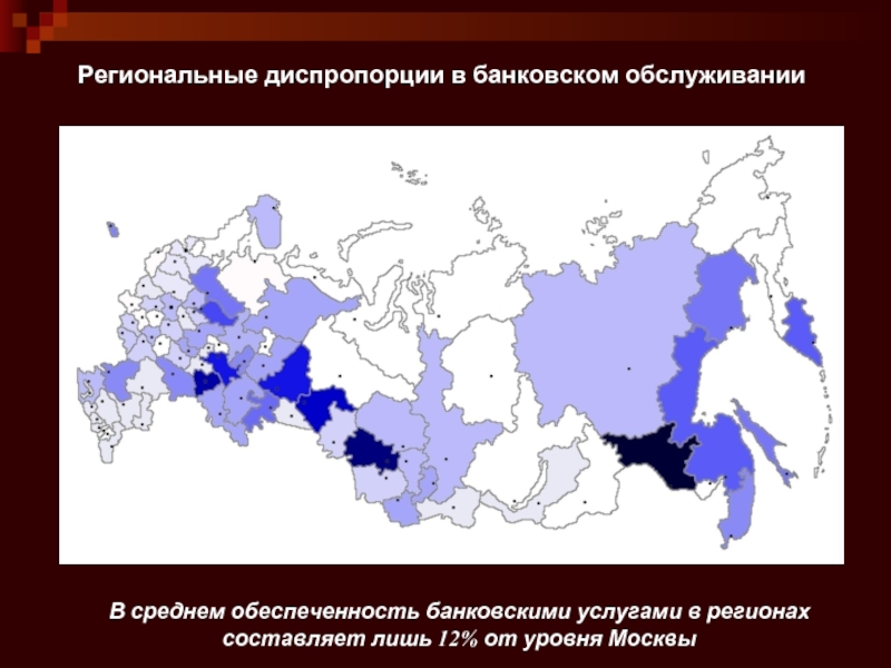 Слайд 9Региональные диспропорции в банковском обслуживании