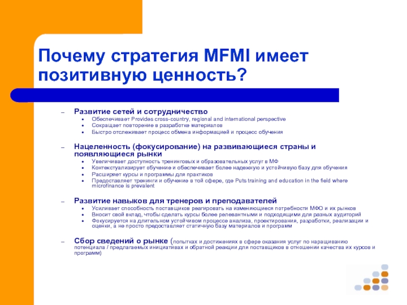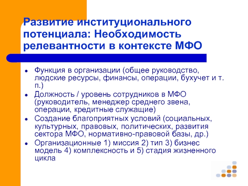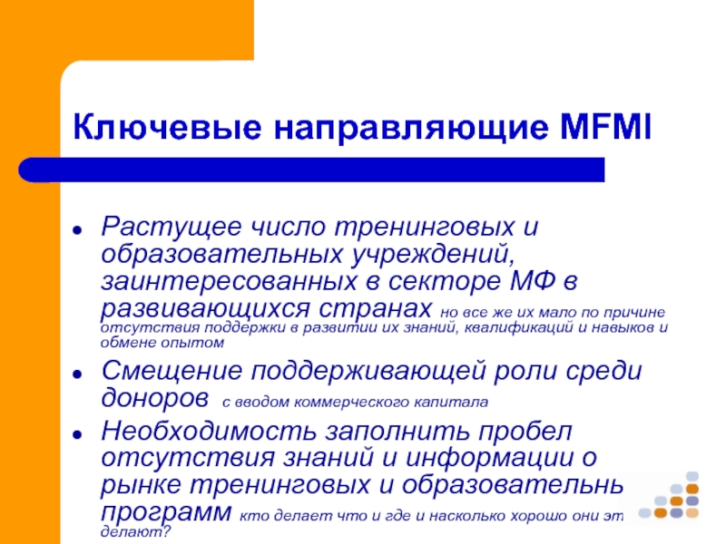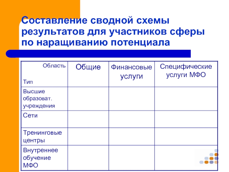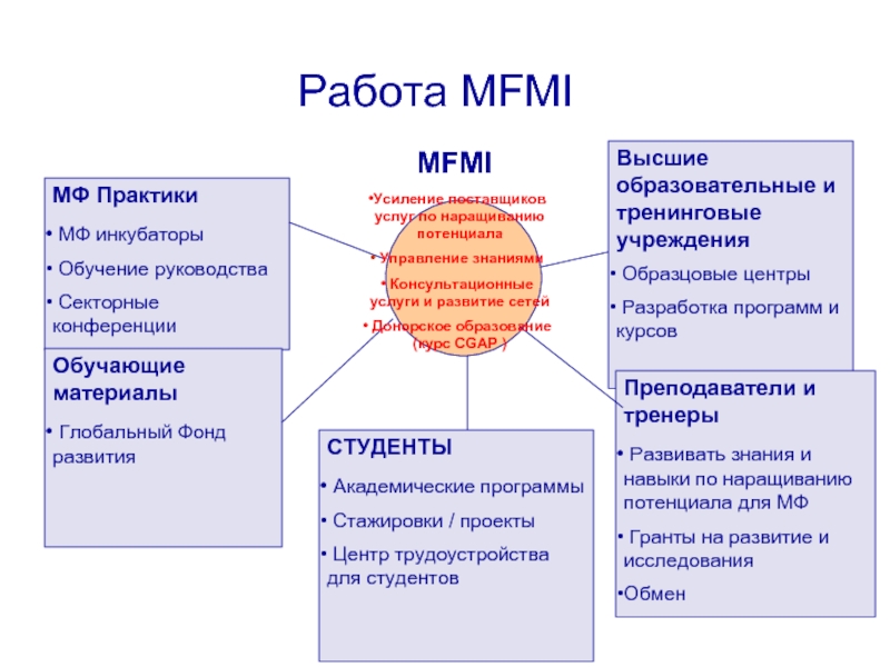 Развивать знания и навыки по наращиванию потенциала для МФ