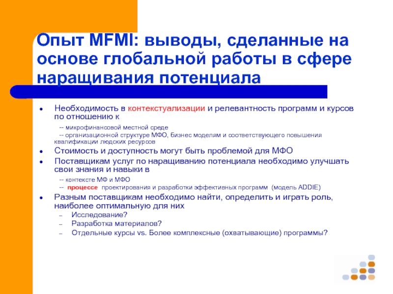 Опыт MFMI: выводы, сделанные на основе глобальной работы в сфере наращивания потенциала