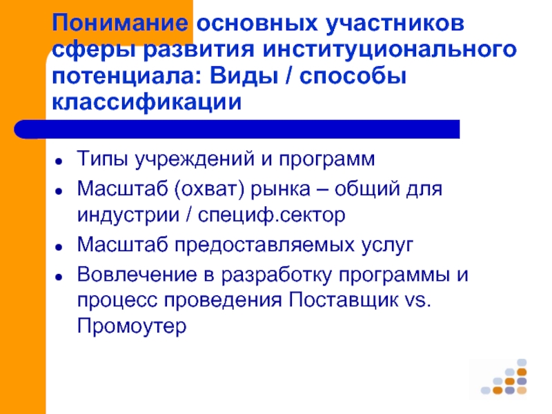 3) Предложение со стороны поставщиков услуг по наращиванию потенциала
