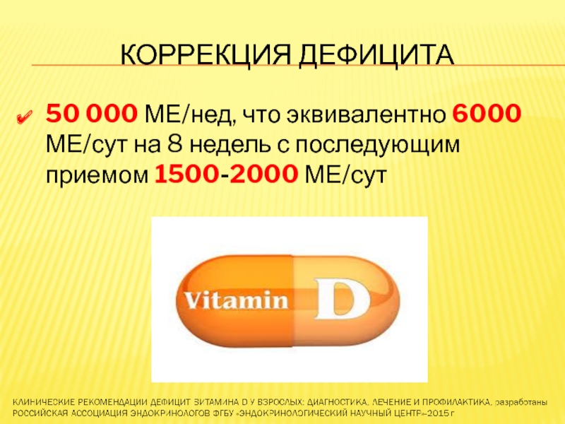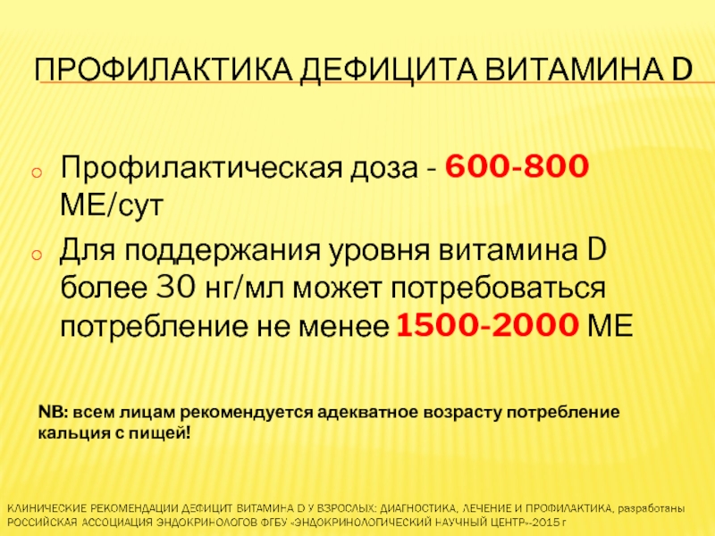 КЛИНИЧЕСКИЕ РЕКОМЕНДАЦИИ ДЕФИЦИТ ВИТАМИНА D У ВЗРОСЛЫХ: ДИАГНОСТИКА, ЛЕЧЕНИЕ И ПРОФИЛАКТИКА, разработаны РОССИЙСКАЯ АССОЦИАЦИЯ ЭНДОКРИНОЛОГОВ ФГБУ «ЭНДОКРИНОЛОГИЧЕСКИЙ НАУЧНЫЙ ЦЕНТР»-2015 г